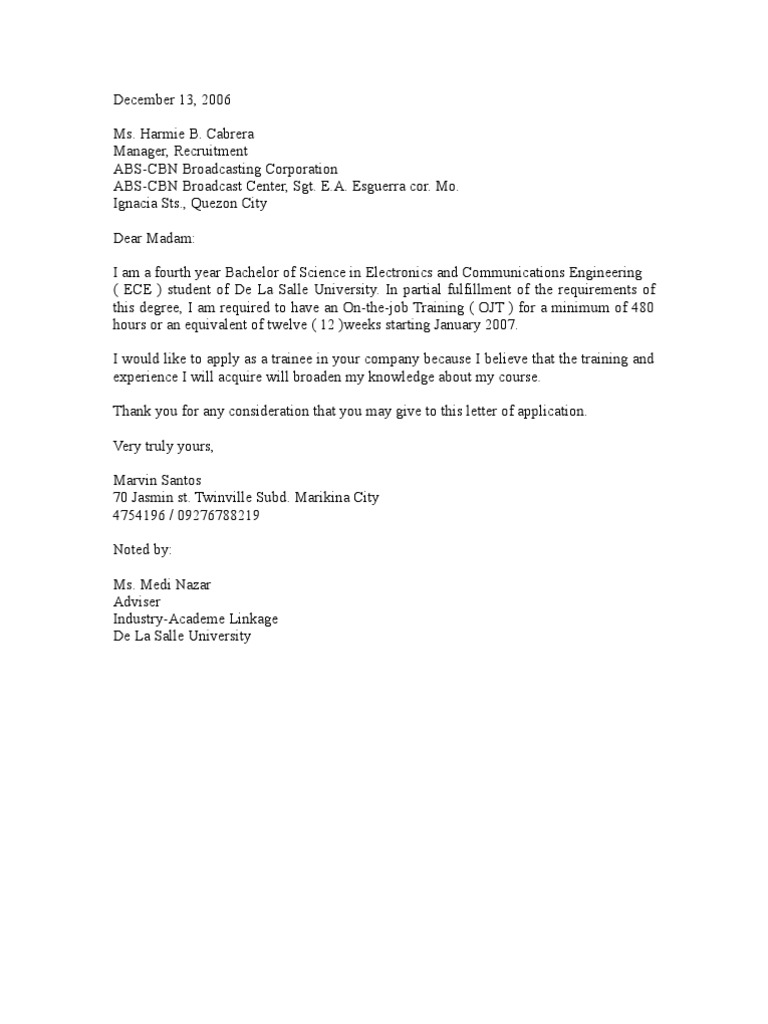 Example Of Application Letter For Ojt Teacher Indeed lately has been sought by users around us, maybe one of you. Individuals are now accustomed to using the internet in gadgets to view image and video information for inspiration, and according to the title of the article I will discuss about Example Of Application Letter For Ojt Teacher.