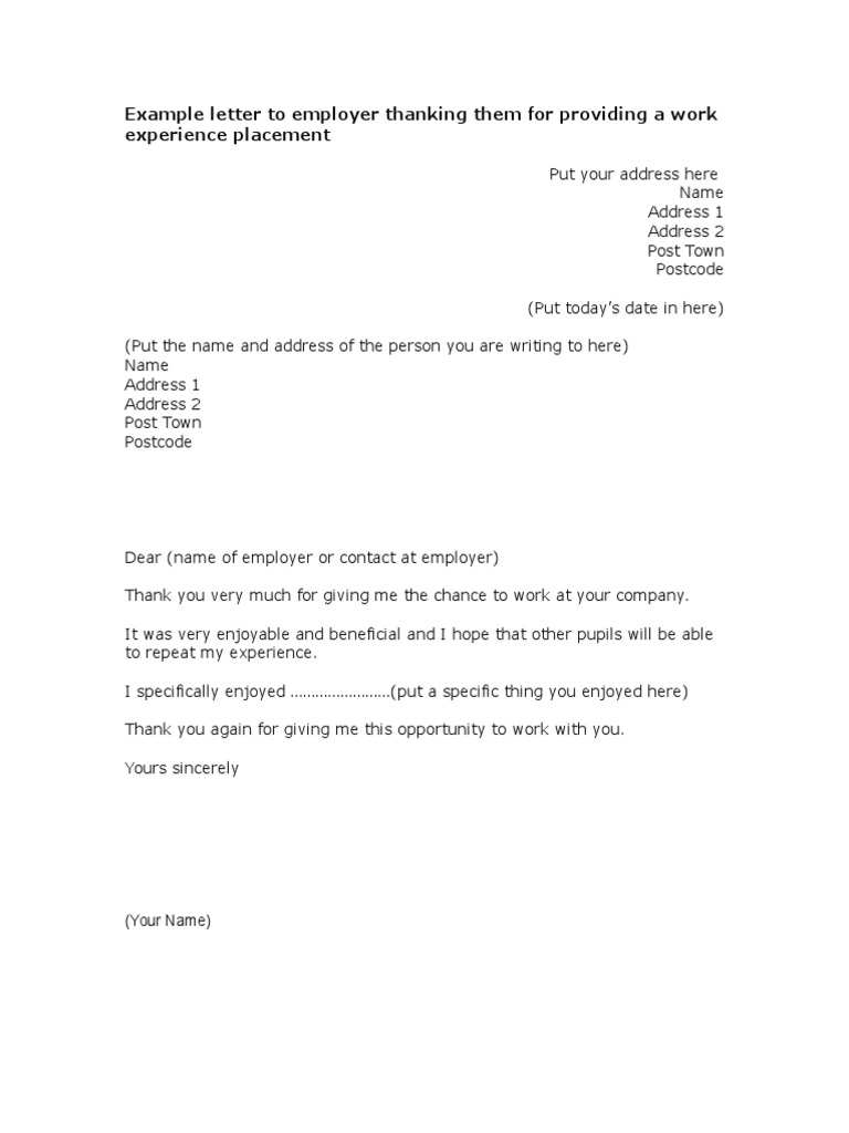 17 Letter Format Examples Pdf Examples. So an experience letter is something where you can attach your letter for work experience, to let a company know you are interested in finding a placement with them. I am a year 10 student from secondary school, studying gcses in maths, english, and science, alongside my chosen subjects of. For example, you could send an appreciation letter to an employee for their hard work. I was impressed by your willingness to. A work experience letter is something you attach on your application for work experience, to let a company know you're interested in finding a placement with example: Whether you just would rather edit one of these appreciation letter templates or create your own letter from a blank page. Here are a few more reasons to express gratitude toward your staff. It certifies the employee's experience with the current you should also be able to provide examples of the work habits of the employee in a positive manner. A thank you letter otherwise known as a letter of thanks refers to a letter that is normally used in a situation where one person wishes to but for a professional thank you letter, the salutation should be formal in nature. Formal thank you letter for work experience. What information goes into a work experience. A work experience letter is a formal letter that is issued by the employer to an employee. A professional thank you letter goes a long way to show that you are thankful for the hard work your employees have put into their jobs every day. 11+ free sample & example of experience letter of various field have been provided here in this article in pdf & word format. Starting with dear is widely accepted and this would work for any thank you letter.