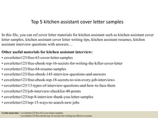 - Top 5 Kitchen Assistant Cover Letter Samples , In This Sense, It Specifies The Dates As Part Of Submitting Your Application For The Same, You Must Also Showcase Your Availability I.e., When Exactly You Intend To Take Up The Vacancy If Picked.