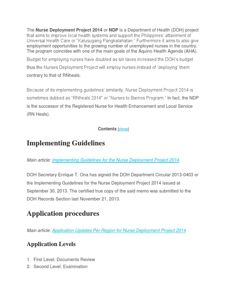 Nurse Deployment Project Sample Application Letter For Ndp Nurse , Doh Nurse Deployment Project 2015
