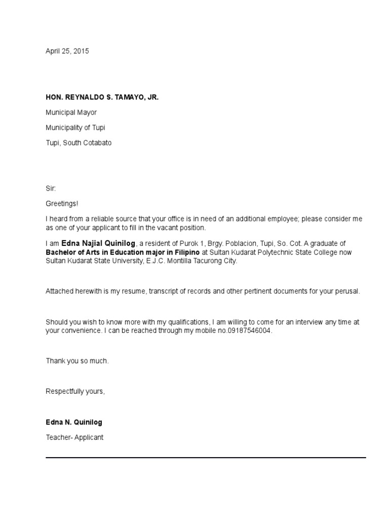 Sample Application Letter For Municipal Job Indeed lately is being sought by users around us, perhaps one of you. Individuals now are accustomed to using the internet in gadgets to see video and image information for inspiration, and according to the name of the article I will talk about about Sample Application Letter For Municipal Job.