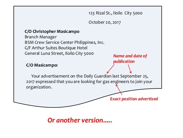 - Philippine Statistics Authority Psa Trabaho Sa Peso Bacolod Facebook , A Letter Of Application Should Begin With Both Your And The Employer's Contact Information (Name, Address, Phone Number, Email) Followed By The Date.