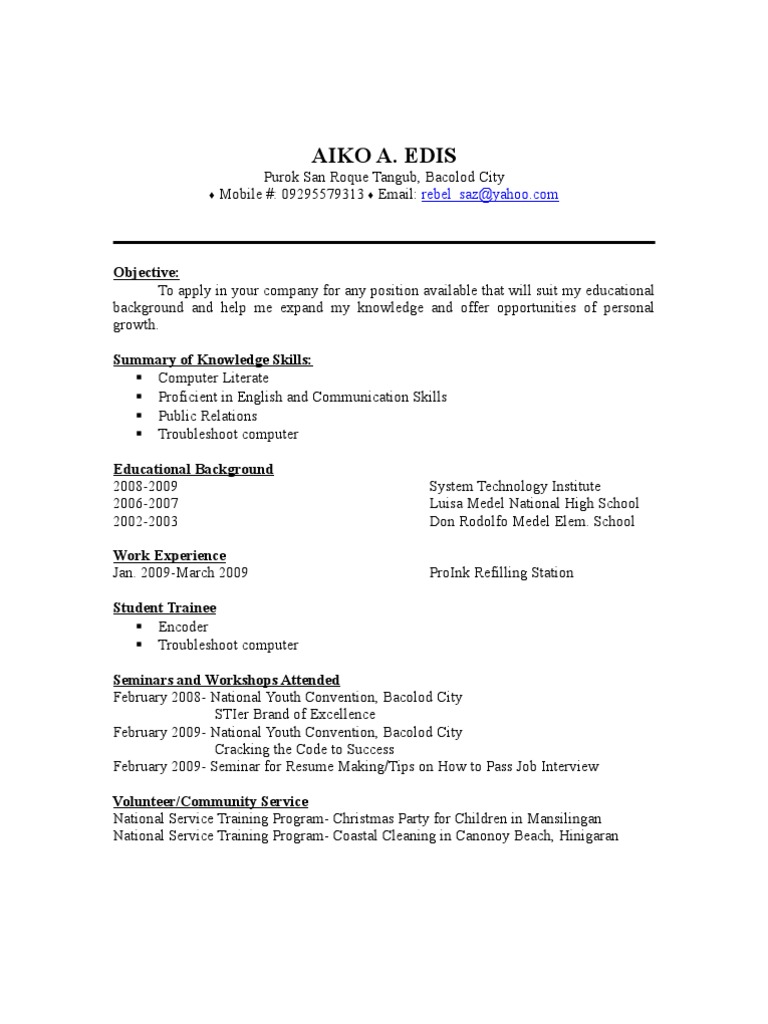 - Sample Resume Format For Fresh Graduates Two Page Format Jobstreet Philippines , Sample Application Letter Formats And Templates For Professionals.