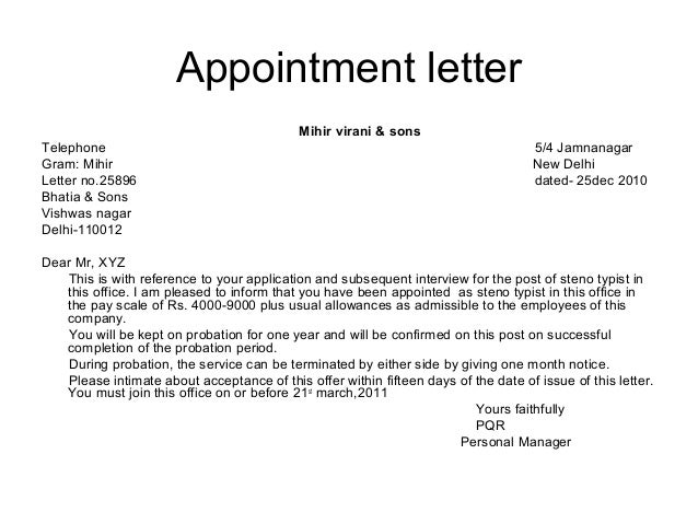 - 12 Sample Appointment Letters Writing Letters Formats Examples : Appointment Letter Is A Formal Letter So It Must Be.
